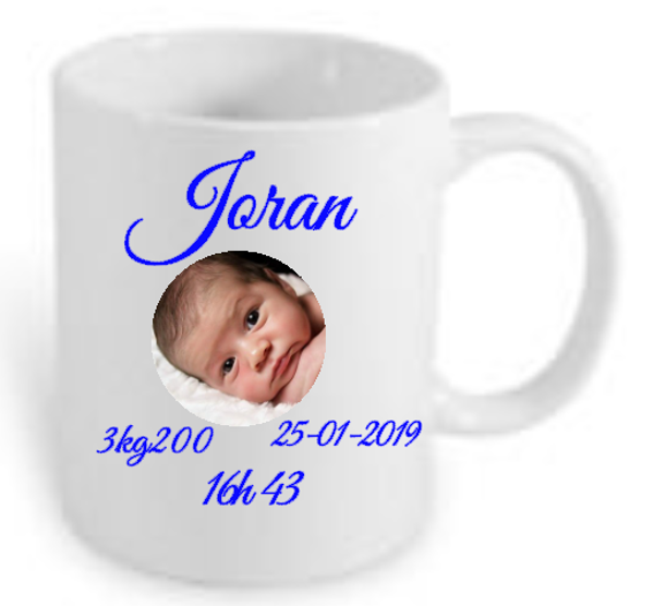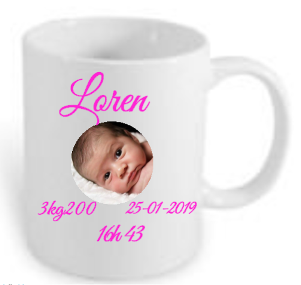 Geboorte mok met eigen foto en tekst