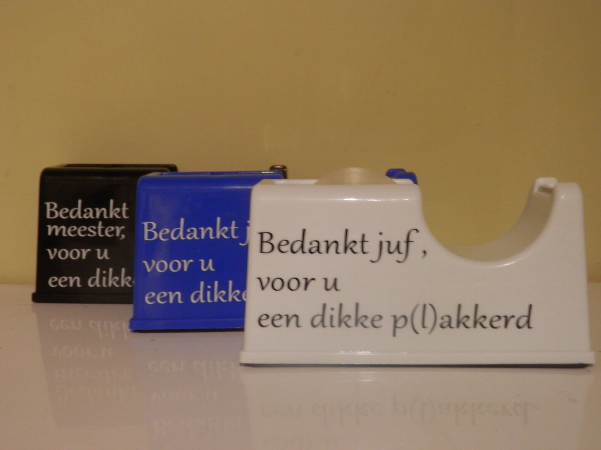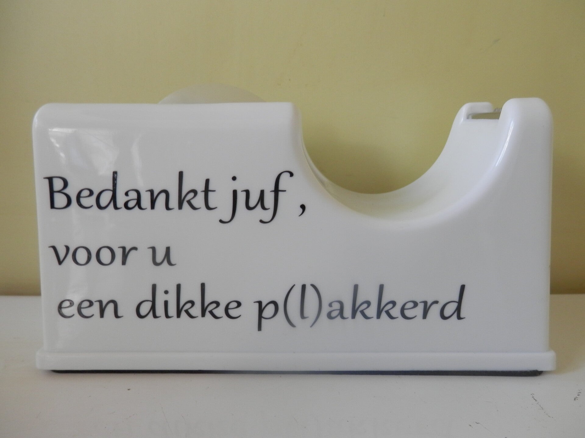 Tapehouder bedankt juf / meester